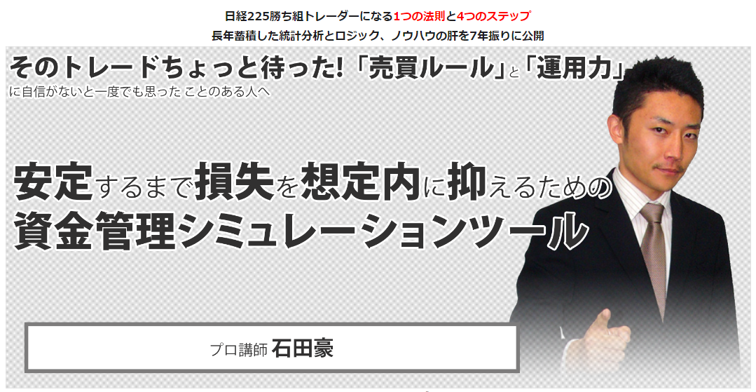 「日経225勝ち組トレーダーになる1つの法則と4つのステップ」は、勝てる理論を検証し続けて構築した「売買ルール」と、理想とするパフォーマンスで運用する効果的な「運用力」、そして勝ち続ける為に必要なツールを提供する日経225先物教材です。