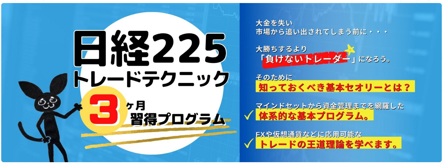 「日経225トレードテクニック」は、日経225先物で常勝トレーダーになるためのテクニックを、3か月で習得するオンラインプログラムです。