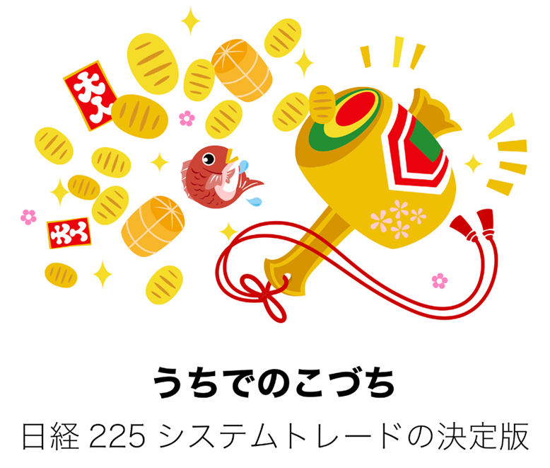 『うちでのこづち』は、日経225先物の寄り引けシステムトレードツールです。
