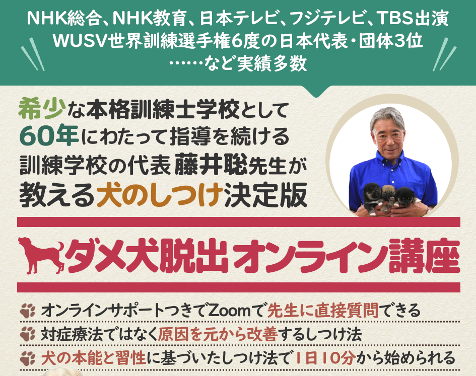 当サイト経由で「ダメ犬脱出オンライン講座」をご購入頂くと、
