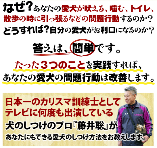 当サイト経由で「犬しつけ ドッグトレーナー藤井聡が教える犬のしつけ教室」をご購入頂くと、