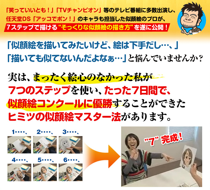 “笑っていいとも 似顔絵マスター選手権”で2度優勝した似顔絵のプロが教える、そっくりな似顔絵を7日で描ける方法を今すぐに習得してみましょう!