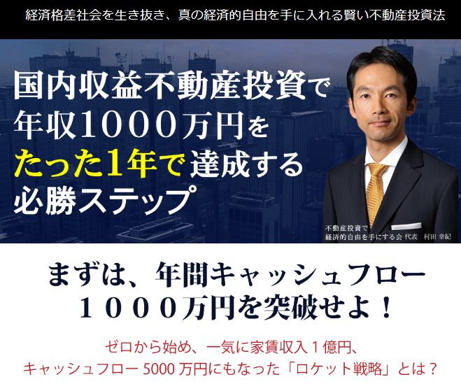 「1年でCF1000万円を可能にする不動産投資ロケット戦略」は、家賃収入1億円を構築している村田幸紀氏による不動産投資法(DVD)です。