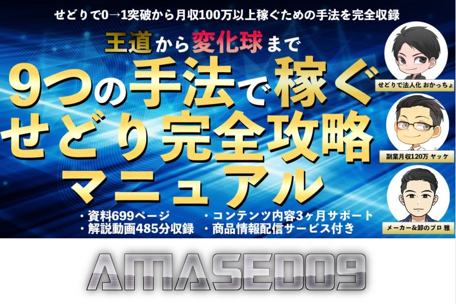 「Amasedo9」は、王道から変化球まで9つの手法で稼ぐせどり完全攻略マニュアルです。