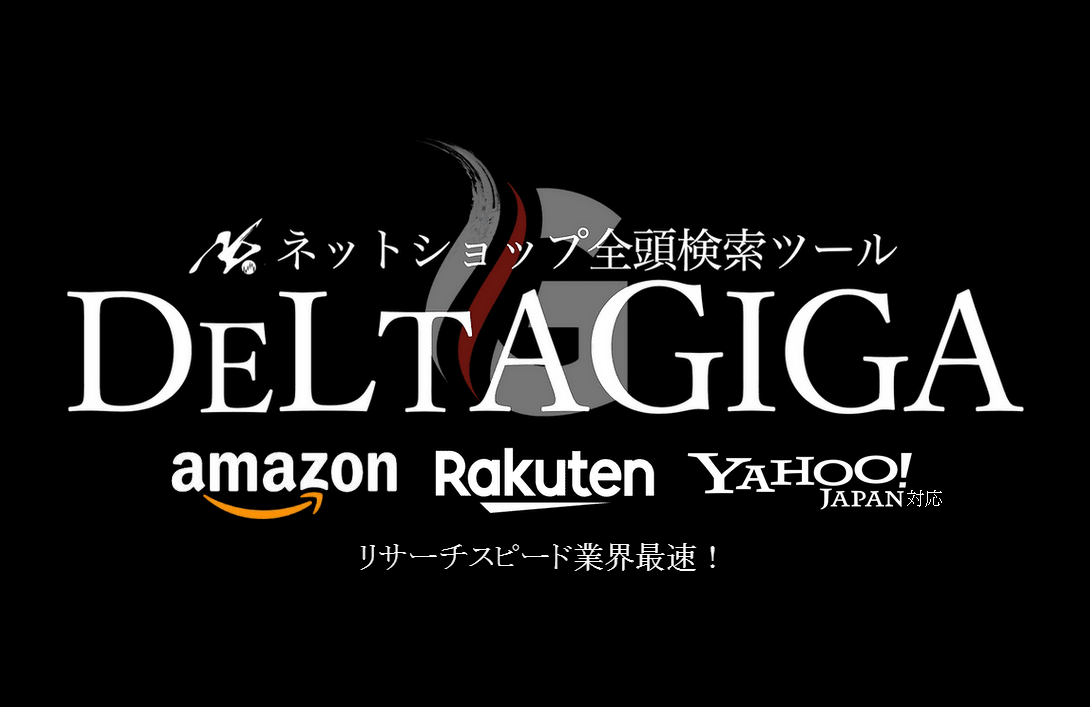 「DELTAGIGA」は、楽天とヤフーショッピングに出品されている商品を全頭検索する「ネットショップリサーチ」と「アマゾンハック」「楽天ハック」これら3つの機能で電脳仕入れ効率化をサポートするツールです。