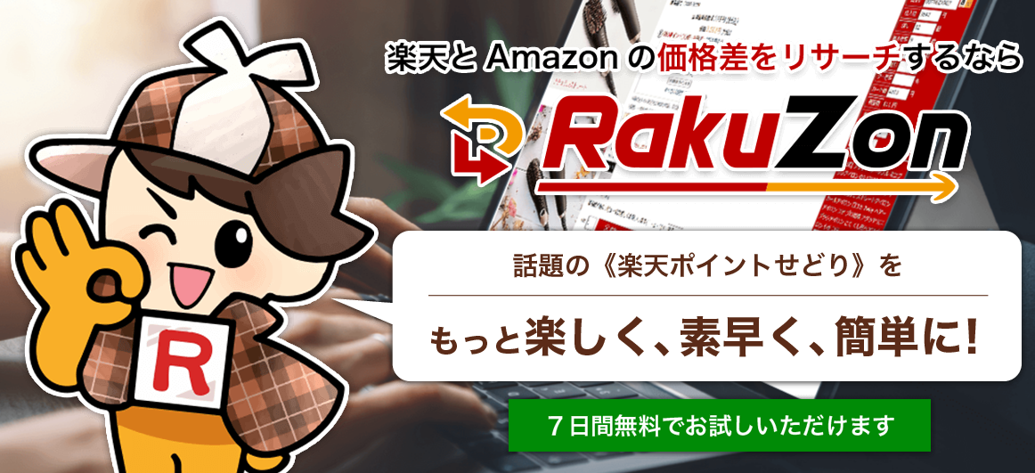 『ラクゾン』は、面倒なポイント計算や利益計算を自動で行ってくれたり、売れ行きが良いAmazonカタログを瞬時に見つけてくれるツールです。
