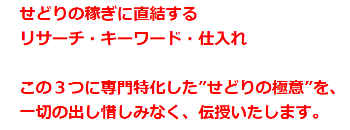 「せどり コア・メソッド」は、せどりのコアとなる「リサーチ・キーワード・仕入れ」に焦点を当てた教材です。