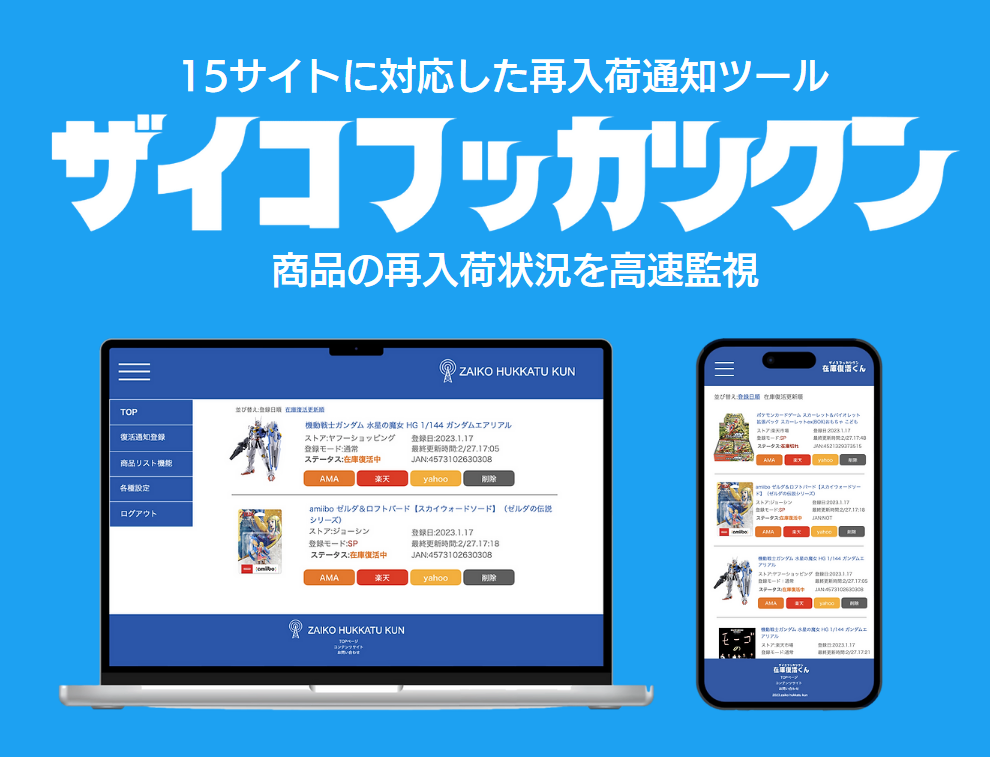 「在庫復活くん」は、15以上のECサイトに対応した再入荷通知ツールです。