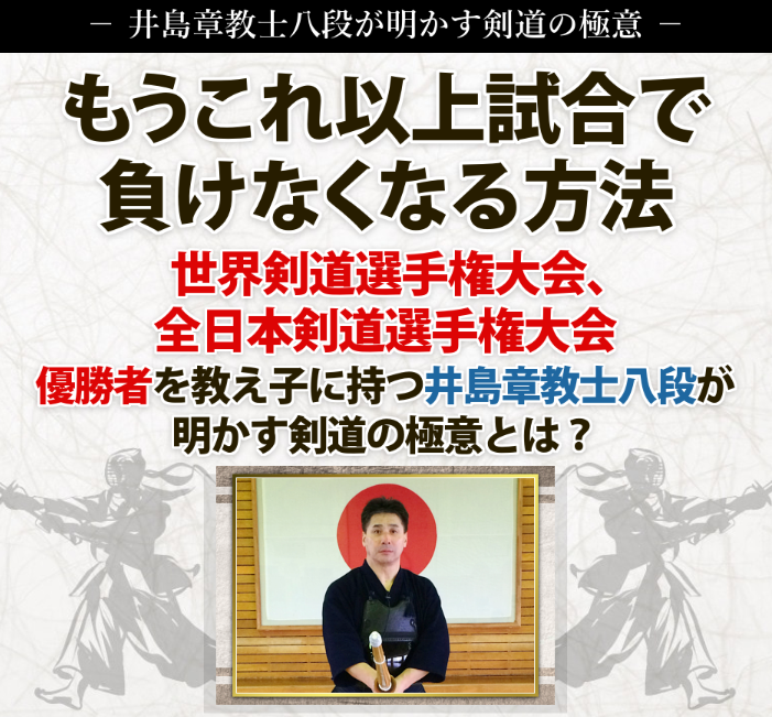 このプログラムは、なかなか試合に勝てずにいる剣士のためにどうしたらもっと実力をつけて試合で勝てるようになるのか、運任せではなく勝つべくして実力で勝てるようになるのか、そのための秘訣をお伝えするものです。