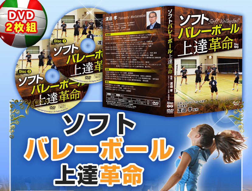 「ソフトバレーボール上達革命」は、日本ソフトバレーボール連盟副理事長である渡邉孝先生が監修するソフトバレーボール上達DVDです。