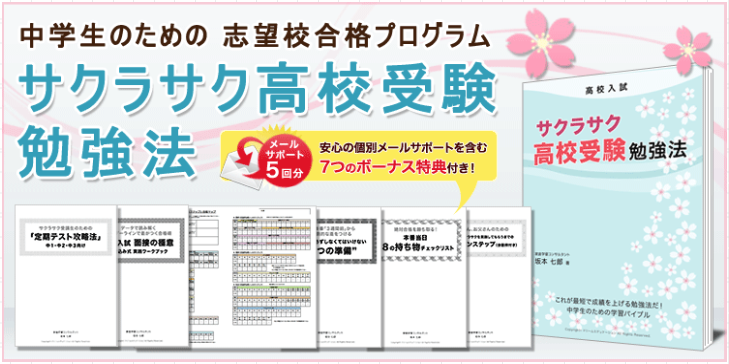 当サイト経由で「サクラサク高校受験 勉強法」をご購入頂くと、