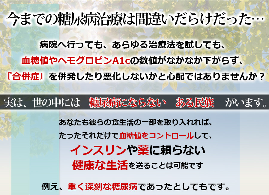 ぜひ、正しい糖尿病の治療法を実践して、糖尿病を根本的に改善してください。